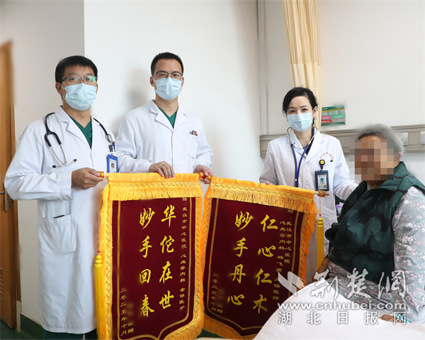 京中网讯(湖北日报网)(通讯员 林琳 记者 刘珊珊 胡甜甜)计划已久的回武汉之旅,因87岁的陈奶奶(化名)抵达家乡而突然发生变化。他最初因腰部不适入院,但意外被诊断出患有危及生命的“心脏危象”——95%的冠状动脉阻塞。所幸,武汉市中心医院南京路院区普内科和心内科团队反应迅速,精准救治,最终挽救了老人的生命。出院前,陈奶奶的家人向医护人员表达了深深的谢意,并向他们赠送了四面特殊的锦旗。